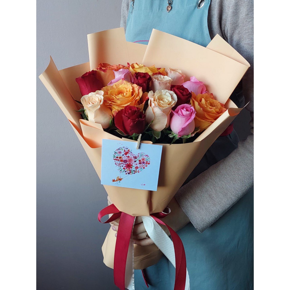 Закажите букет цветов из 15 радужных роз с доставкой в Астане, Алматы и других городах Казахстана.
