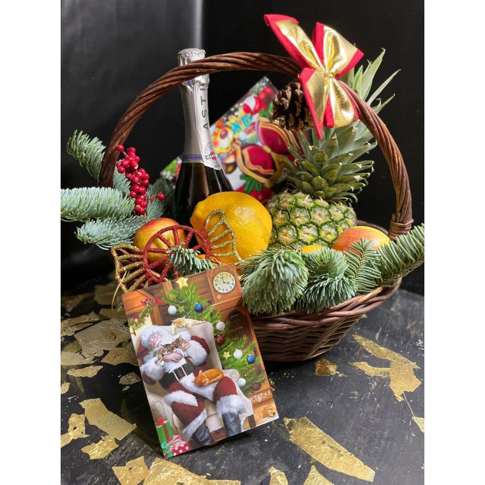 Шампанское ASTI Martini/Martini prosecco, конфеты , фрукты (апельсины, яблоки, ананас , елочные игрушки и украшения