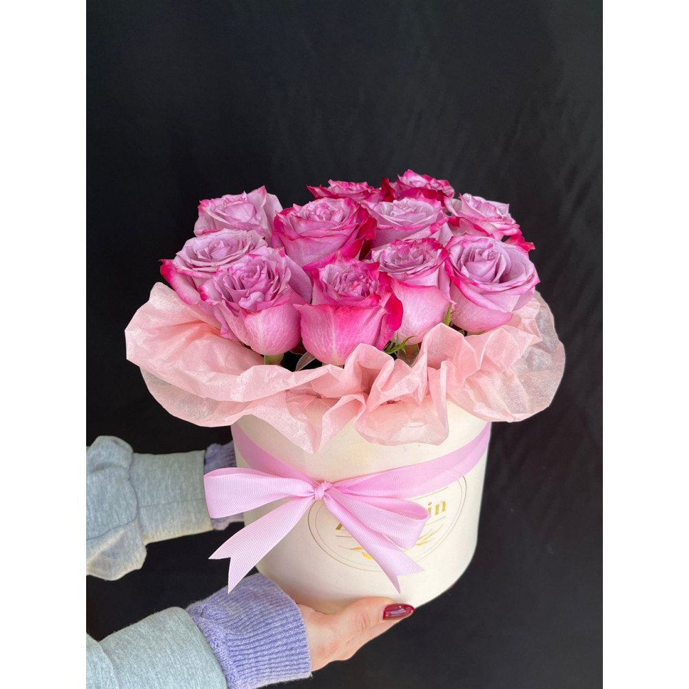 11 фиолетовых роз в коробке