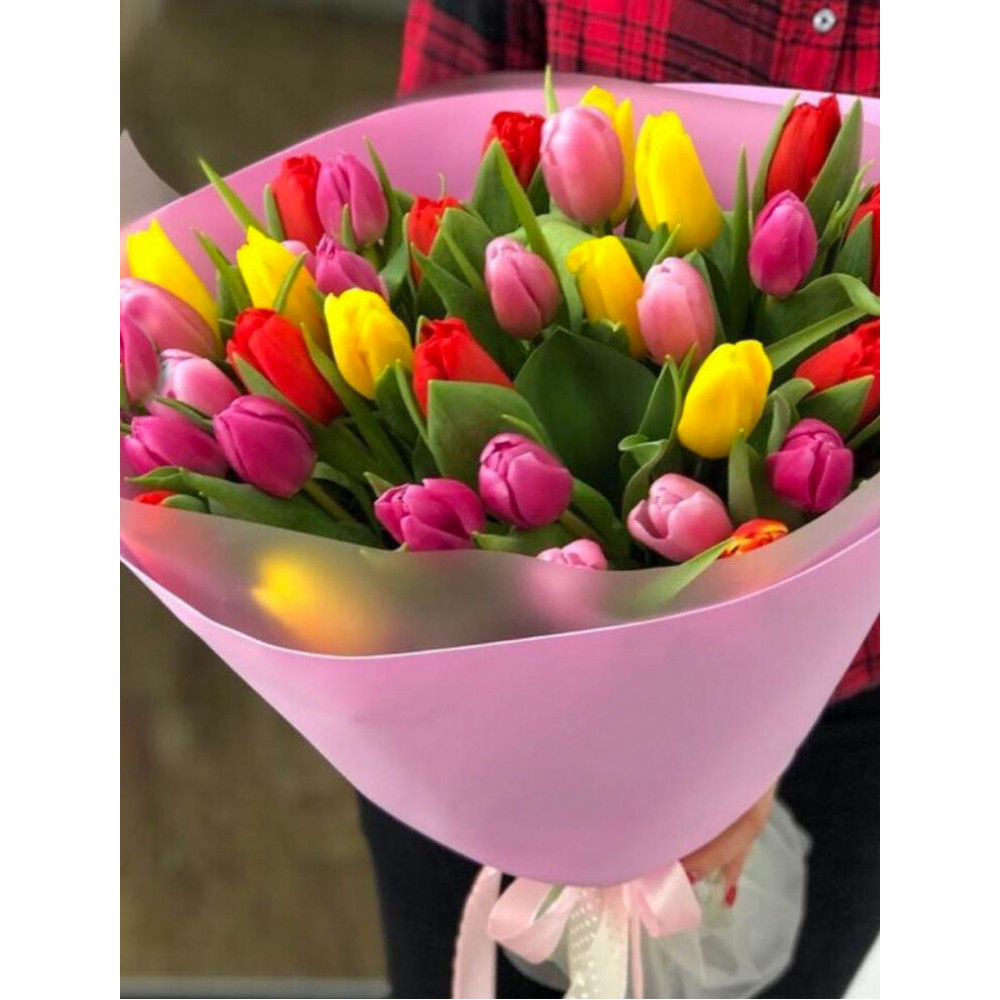 Хотите действительно удивить любимого Вам человека? Разноцветный букет из 31-го тюльпана в красочном оформлении подарит обойму положительных эмоций. Такое сочетание цветов может вызывать только радость на лице получателя букета. Не откажите себе в удовольствии кого-то осчастливить.  Хватит испытывать судьбу в цветочных ларьках. Будьте оригинальны. Мы сможем доставить Вам самые свежие цветы в кратчайшие сроки. Такой букет никого не оставит равнодушным